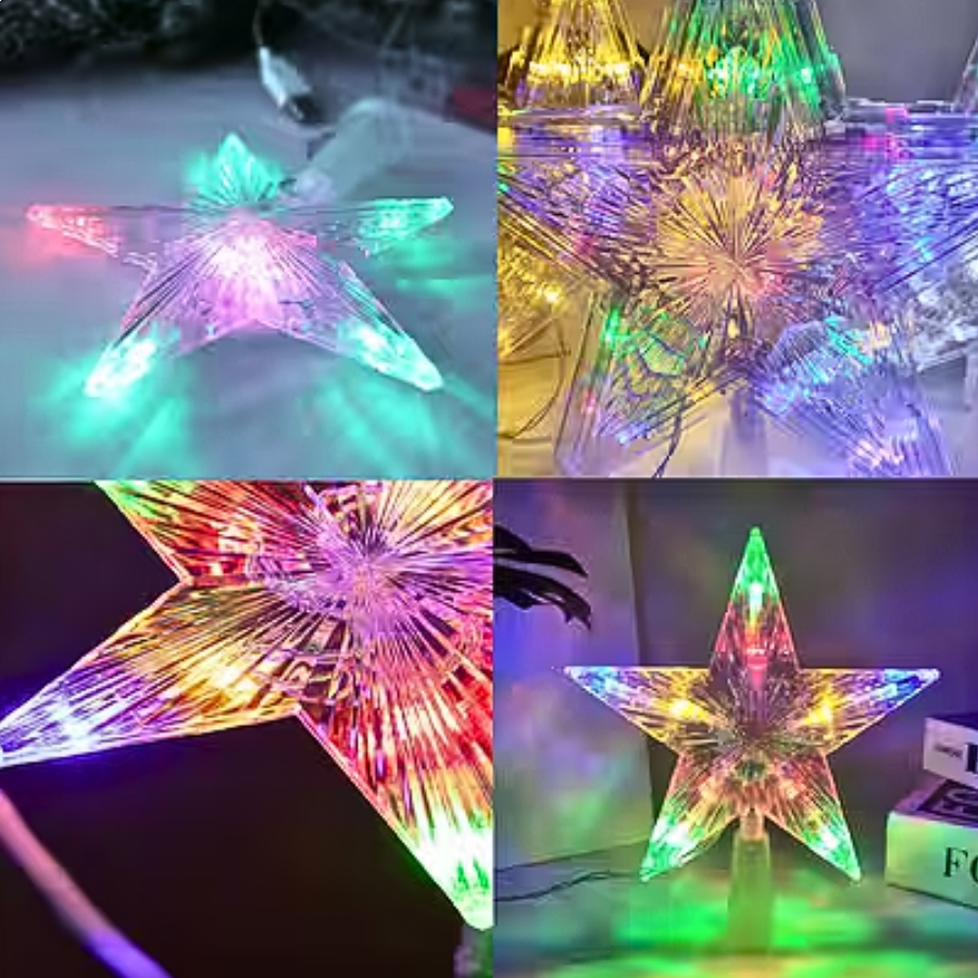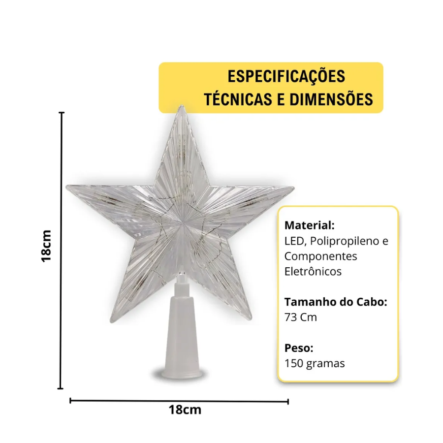 -Quantidade de LEDs: A estrela é equipada com aproximadamente 10 LEDs internos para garantir brilho e visibilidade no topo da árvore.