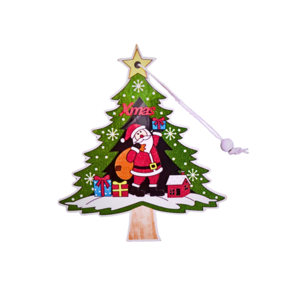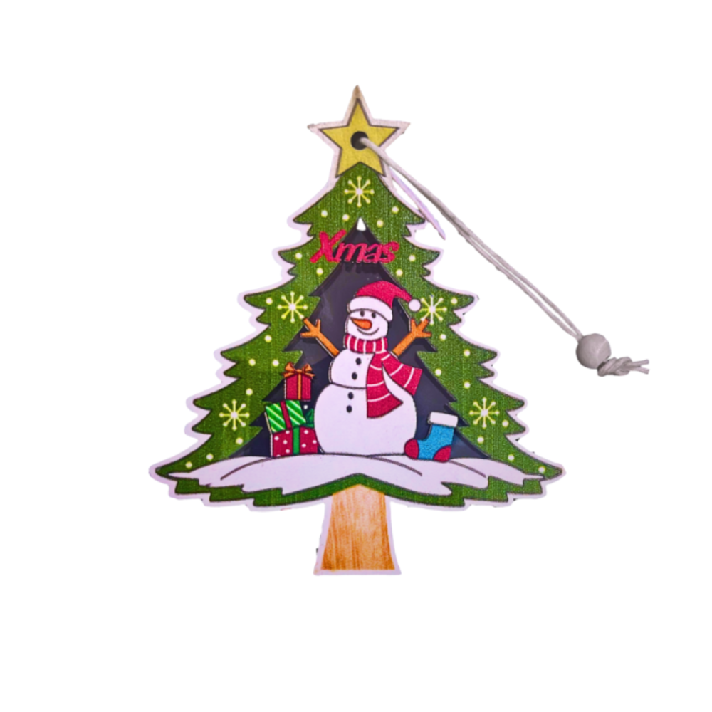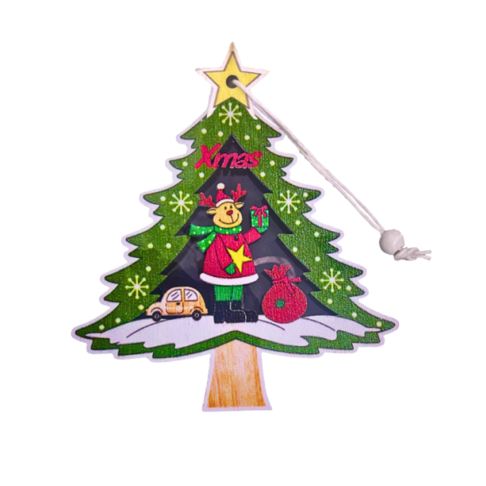 -Material: O pingente confeccionado em materiais leves e duráveis para enfeites, como Plástico, Acrílico Sintético, Feltro ou uma combinação desses, permitindo a suspensão sem sobrecarregar os galhos da árvore.