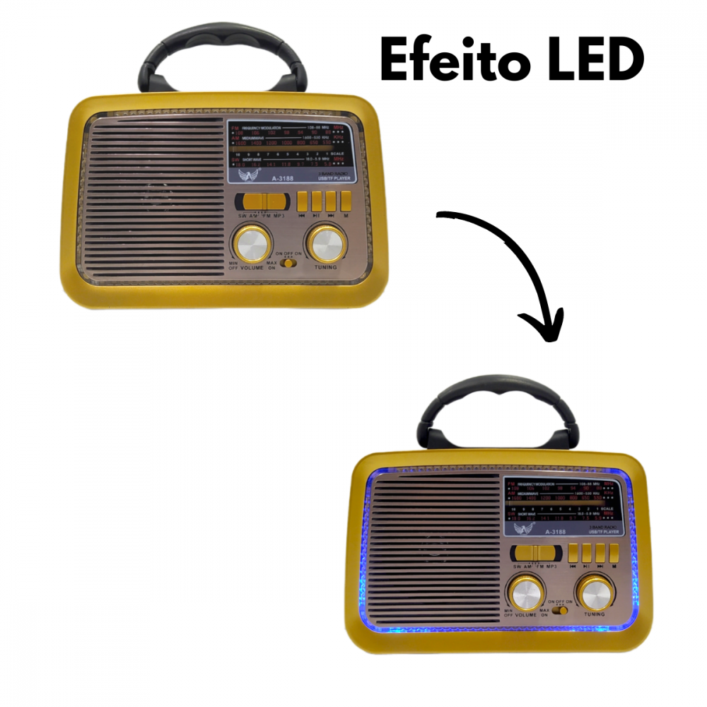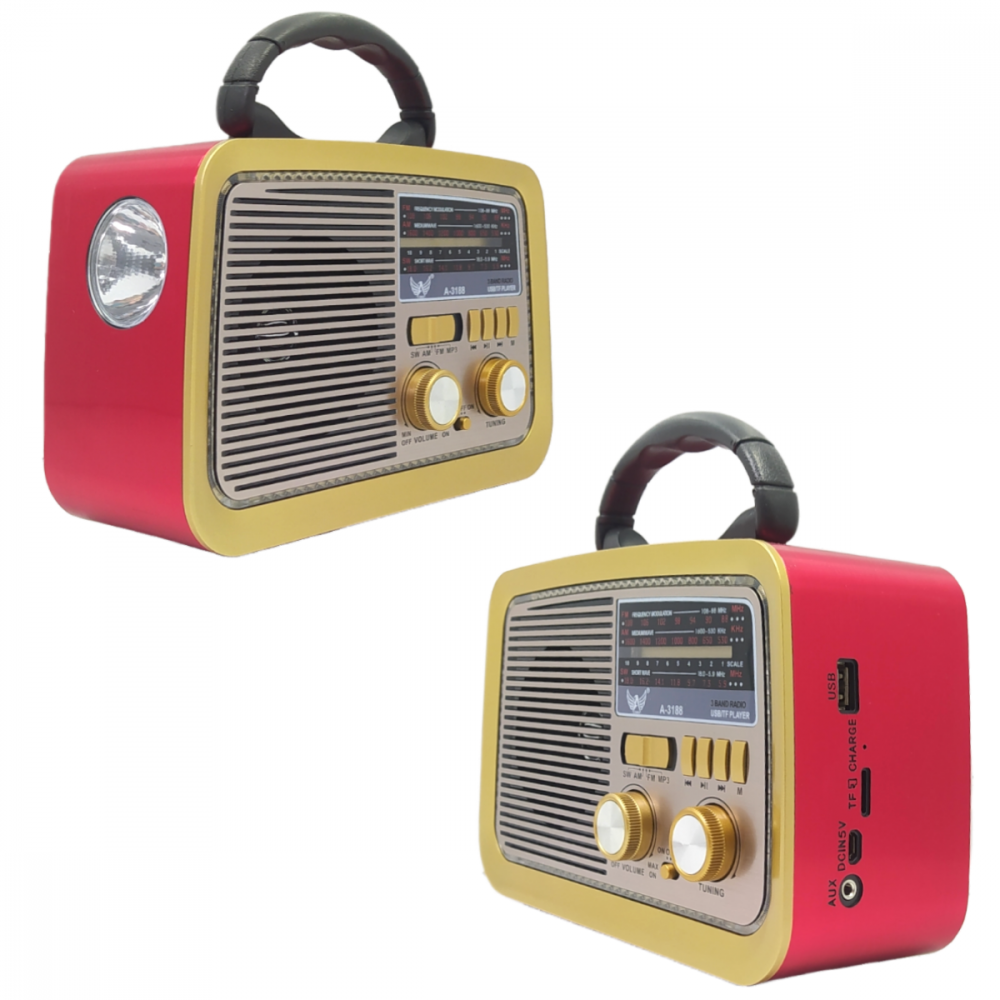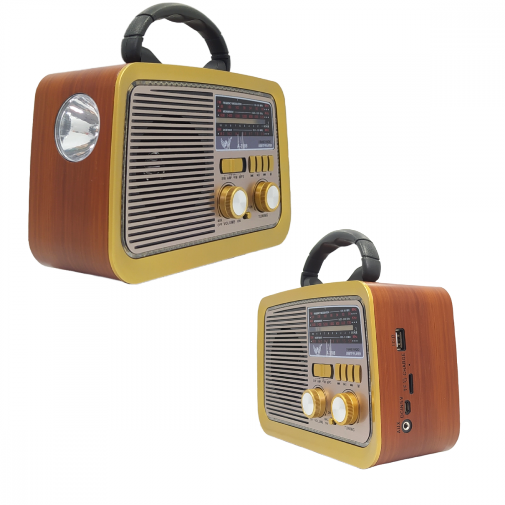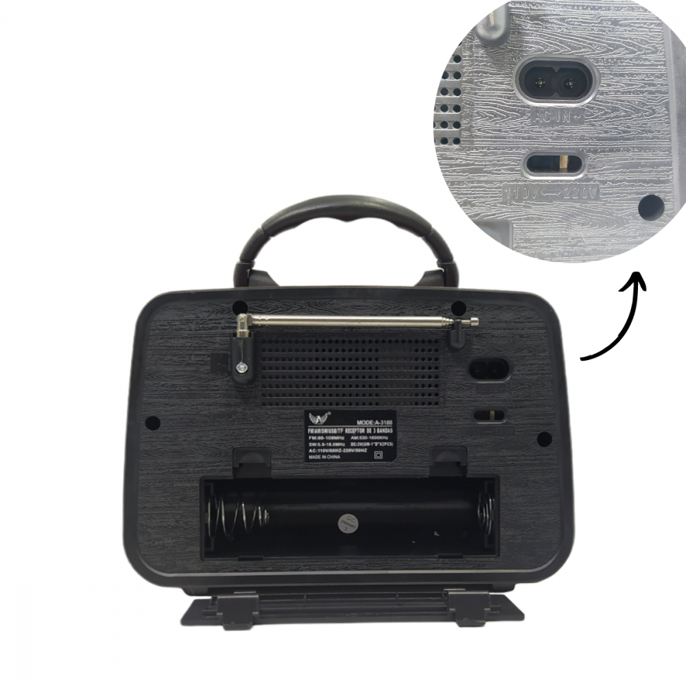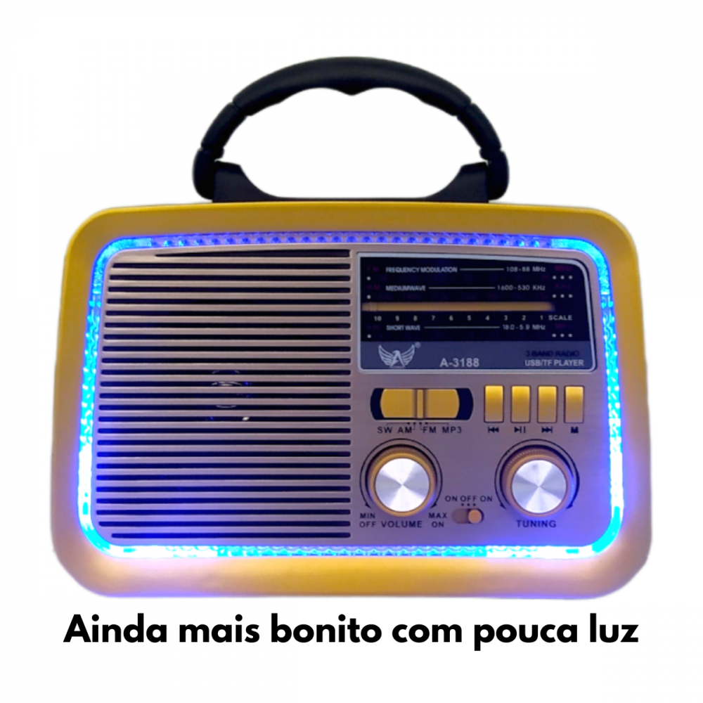 O modelo AD-3188 é um rádio portátil com design clássico e acabamento retrô, ideal para quem busca uma peça funcional e decorativa. Ele oferece diversas opções de reprodução de áudio, incluindo rádio, conectividade Bluetooth e entradas para mídia externa.