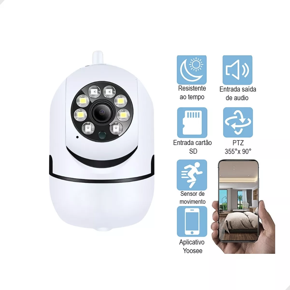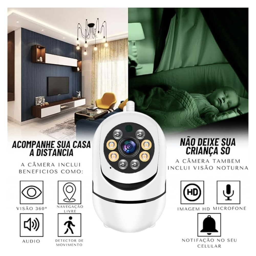 Câmera Segurança Babá Eletrônica WiFi Giro 360°