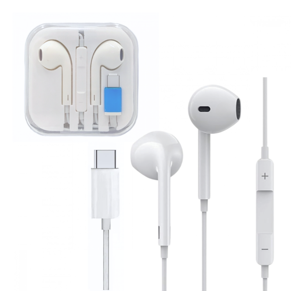 Fone de Ouvido Intra Auricular Com Fio e Microfone Controle de Volume Conexão TIPO-C