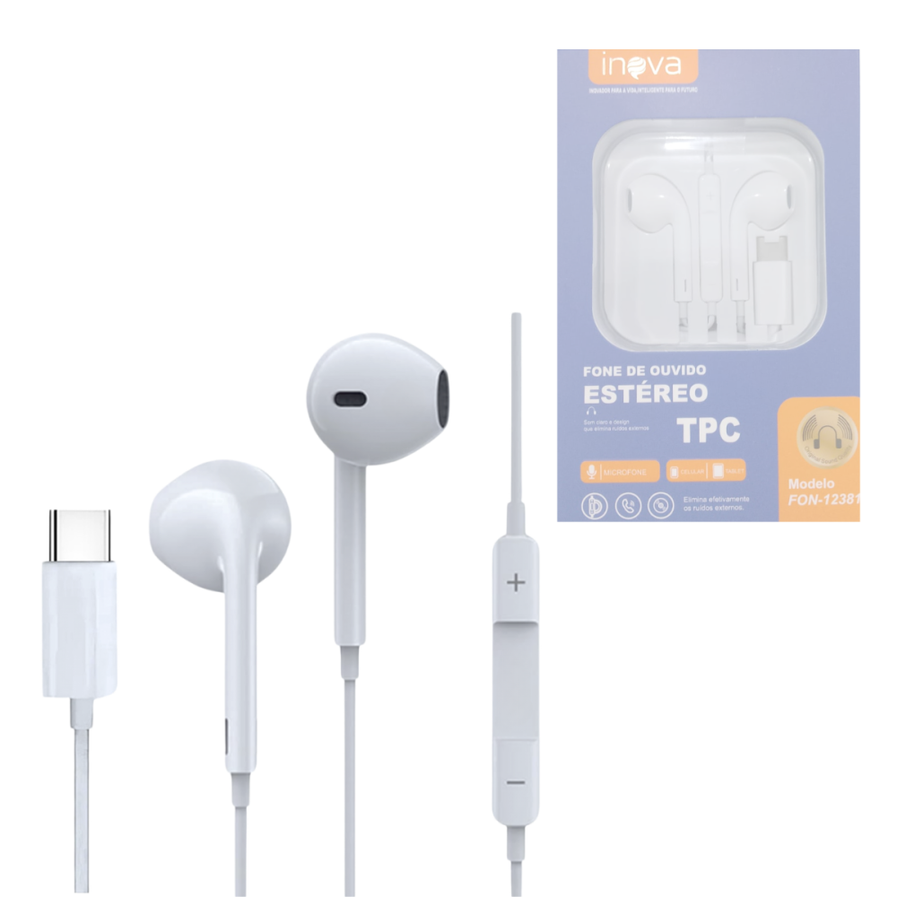 -- Fone de Ouvido Intra Auricular Com Fio e Microfone Controle de Volume Conexão TIPO-C INOVA FON-12381