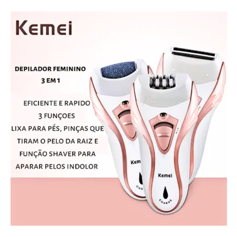 -- Depilador Aparador de Pelos Elétrico, Lixa Para os Pés 3 em 1 Bivolt Kemei KM-3010