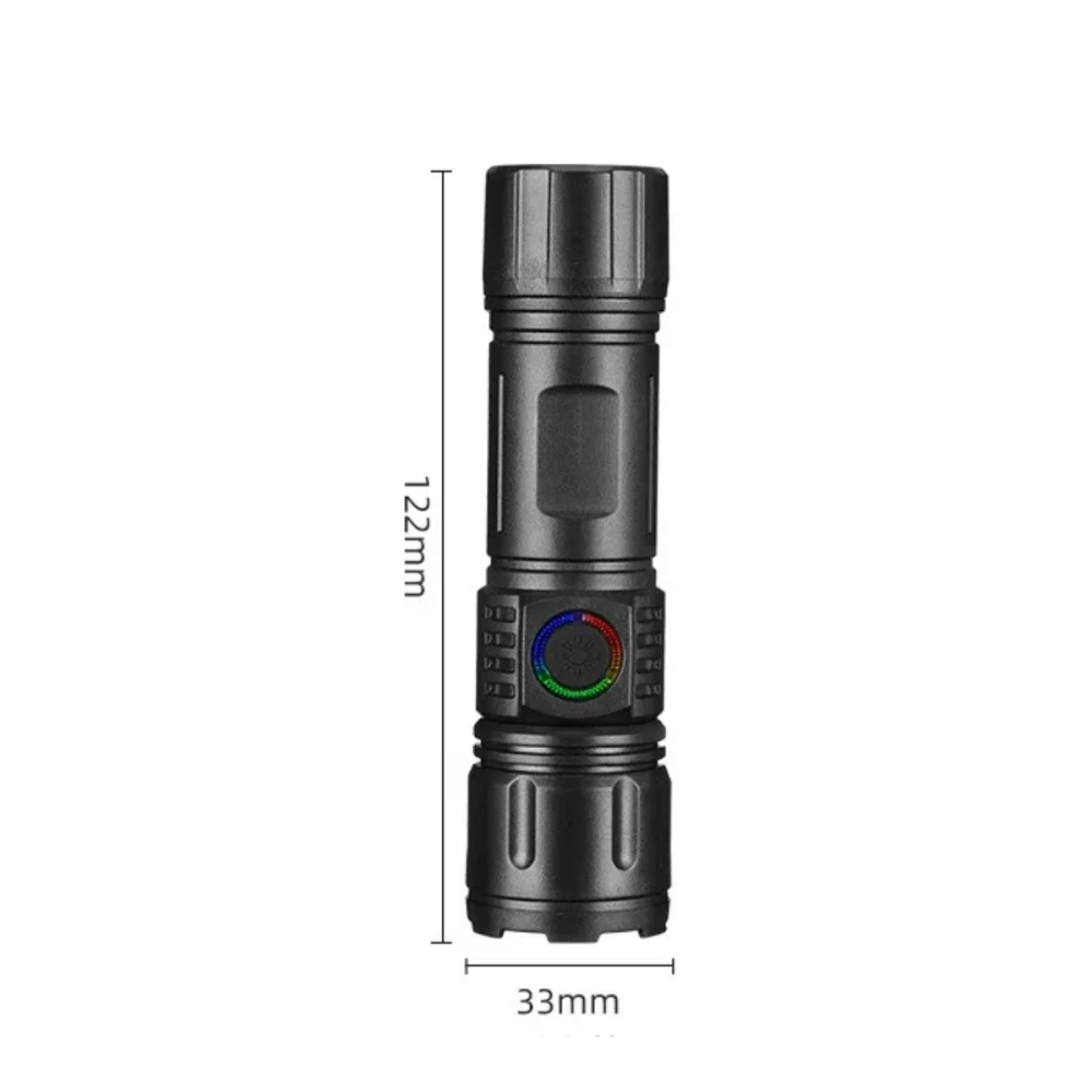Lanterna Tática Portátil Carregamento USB Luz LED RGB