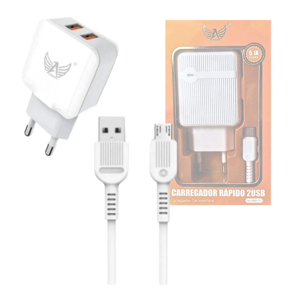 -- Carregador Rápido 5.1 com 02 Portas USB Cabo 1 Metro V8 Altomex AL-9085-V8