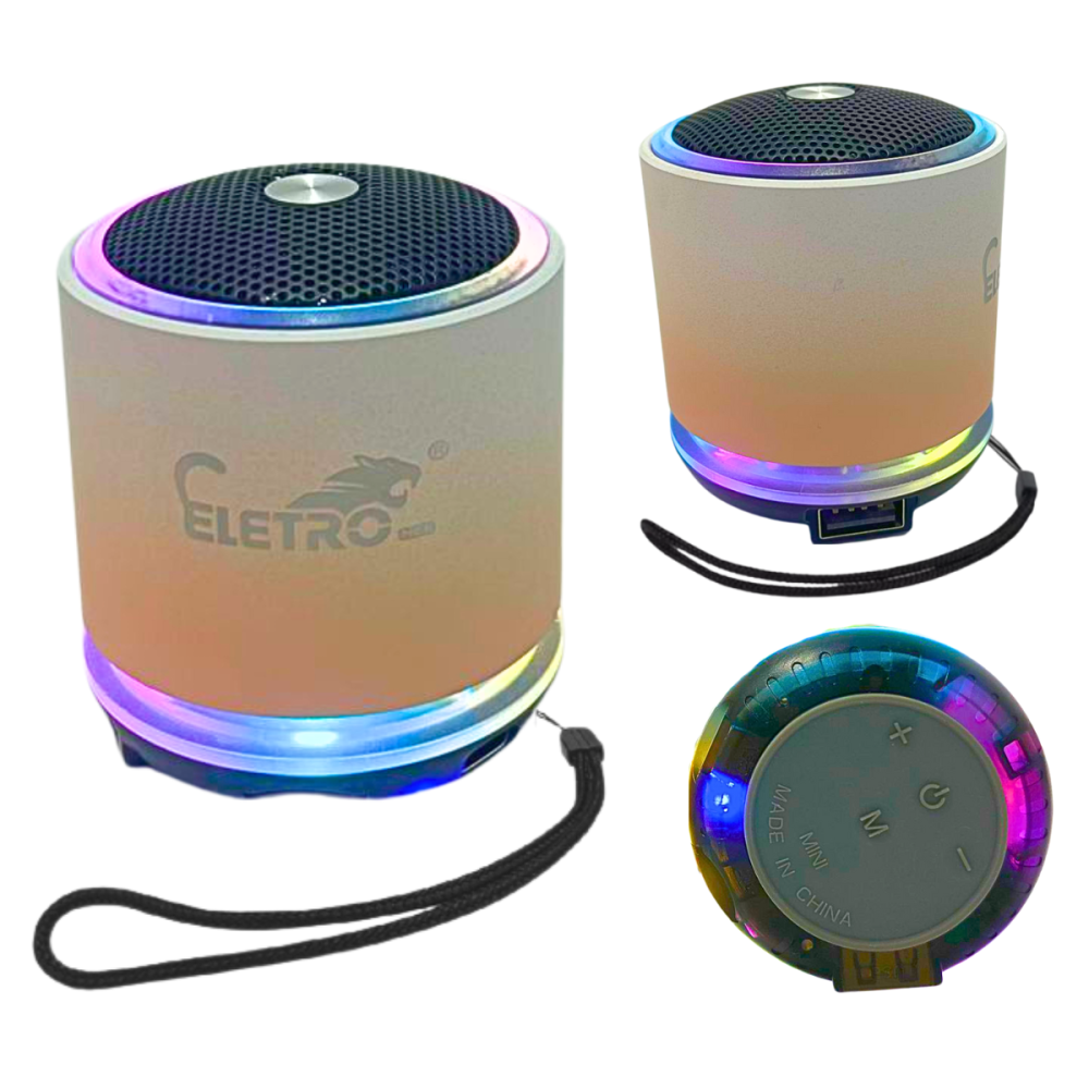 -- Mini Caixa de Som Bluetooth USB 10W LED RGB Eletromex EL-1090