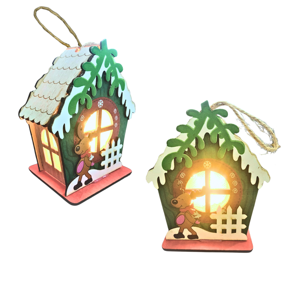 Pingente de Natal Decoração Cabana LED Amarelo