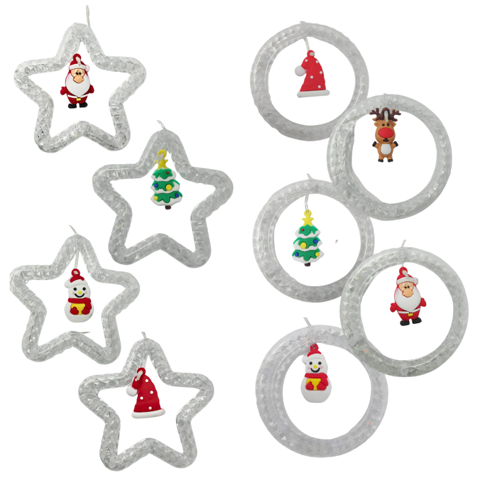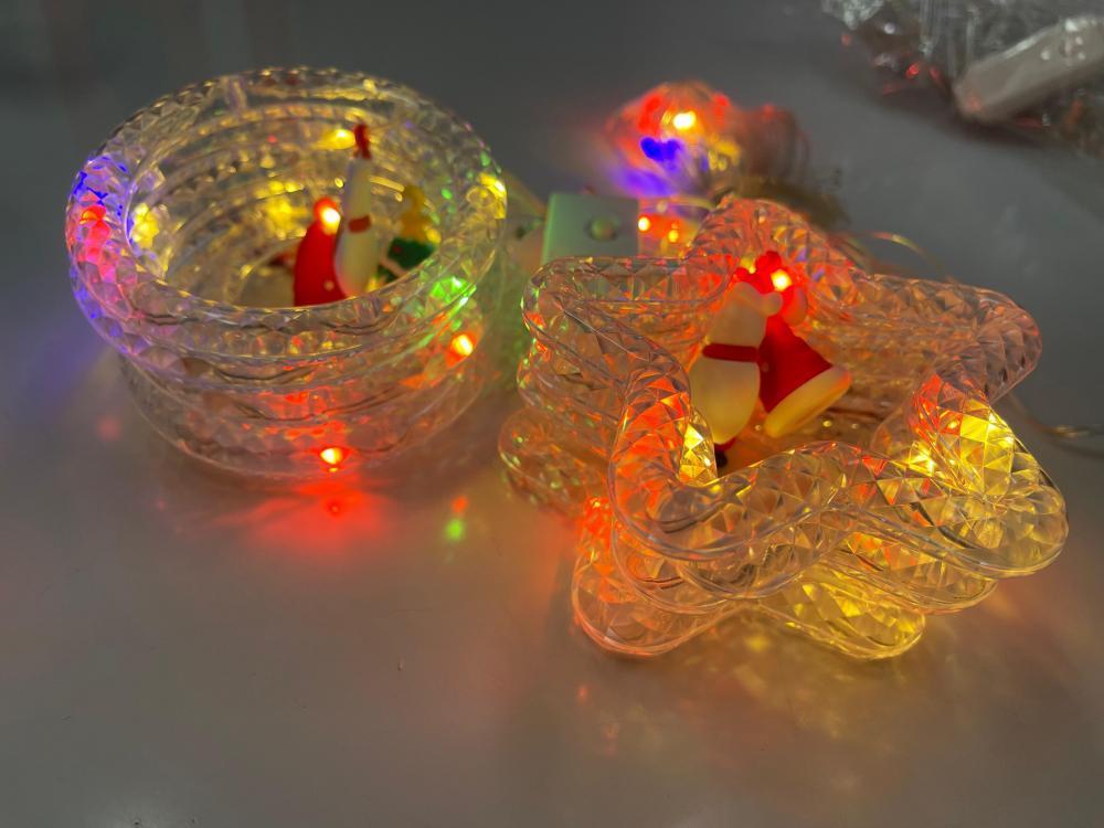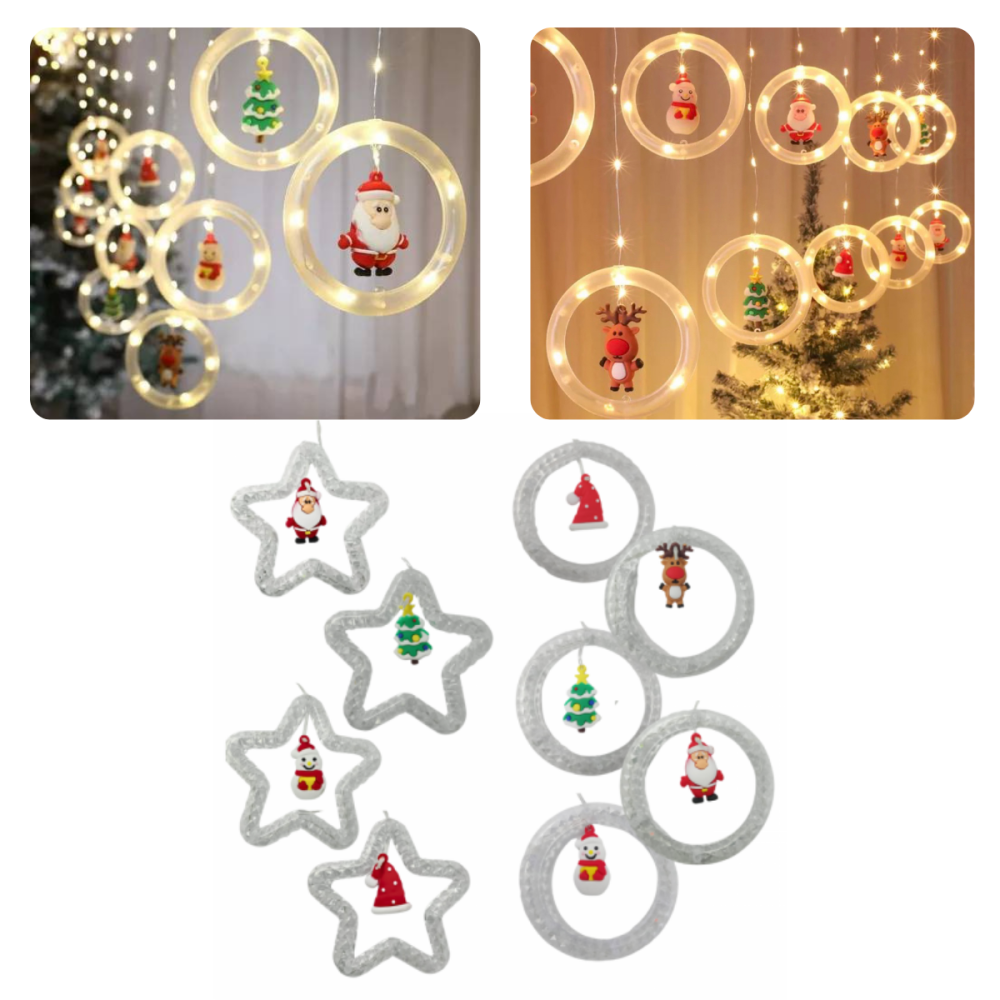 O modelo AL-4870 é um conjunto de luzes decorativas LED indicado para uso em decorações natalinas e ambientes festivos. O produto é confeccionado em estilo cortina, com fios transparentes e iluminação multicolorida. Possui miniaturas temáticas de Papai Noel, árvore de Natal e boneco de neve, que complementam a decoração com detalhes visuais característicos da época.