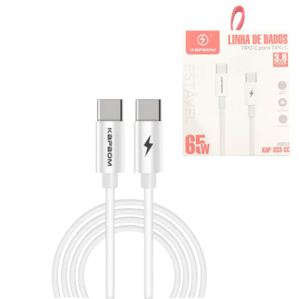 Cabo de Dados Conexão Tipo-C / Tipo-C 65W Cabo 1 Metro Kapbom KAP-333-CC