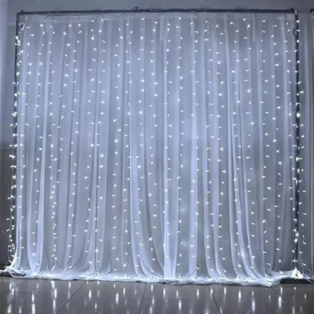 Com 3 metros de largura e 2 metros de queda, ela é ideal para decorar grandes janelas, paredes, fachadas e jardins, transformando qualquer ambiente com um brilho intenso e festivo.