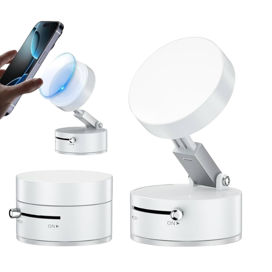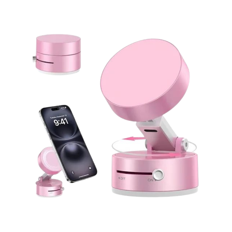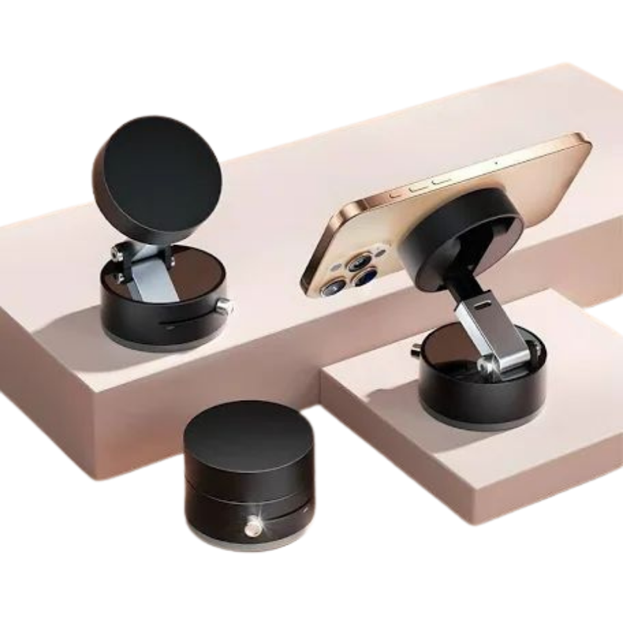 O suporte magnético foi desenvolvido para oferecer fixação segura e estável em diferentes superfícies. Seu sistema combina tecnologia de sucção a vácuo com ímãs de alta potência, proporcionando praticidade no uso e estabilidade ao posicionar o celular.