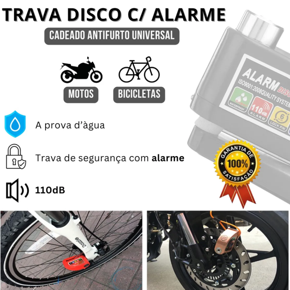-Compatibilidade: Universal, compatível com a maioria das motocicletas, scooters, e bicicletas que possuam freio a disco ventilado.