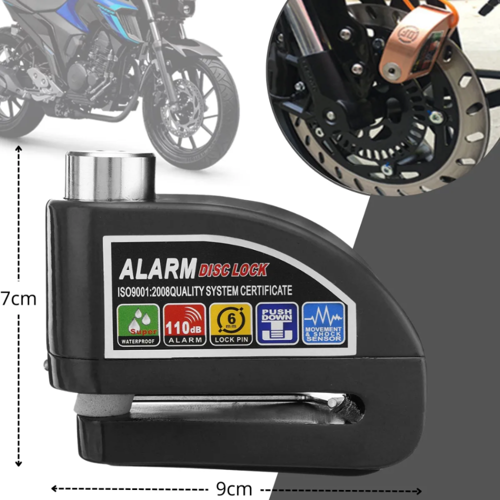 Trava Cadeado Disco De Freio Com Alarme Antifurto Para Moto