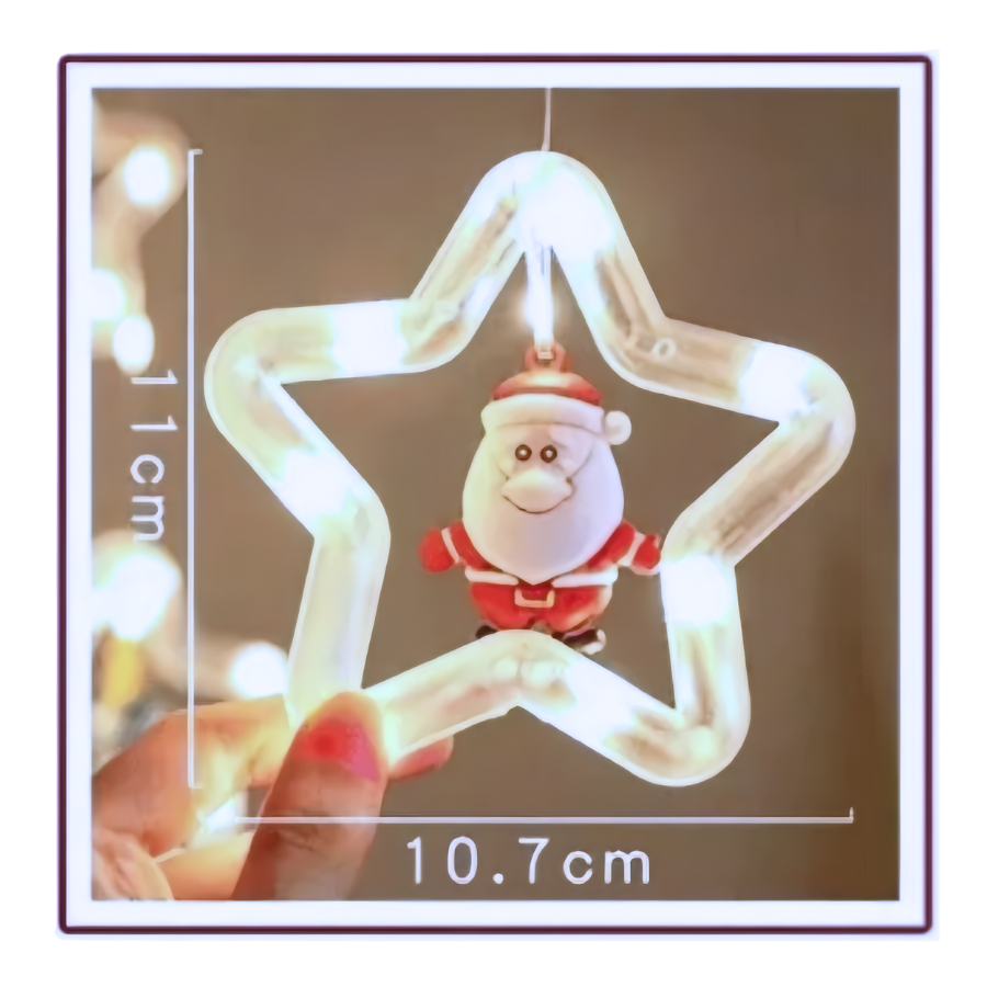 O modelo AL-4870 é um conjunto de luzes decorativas LED indicado para uso em decorações natalinas e ambientes festivos. O produto é confeccionado em estilo cortina, com fios transparentes e iluminação multicolorida. Possui miniaturas temáticas de Papai Noel, árvore de Natal e boneco de neve, que complementam a decoração com detalhes visuais característicos da época.