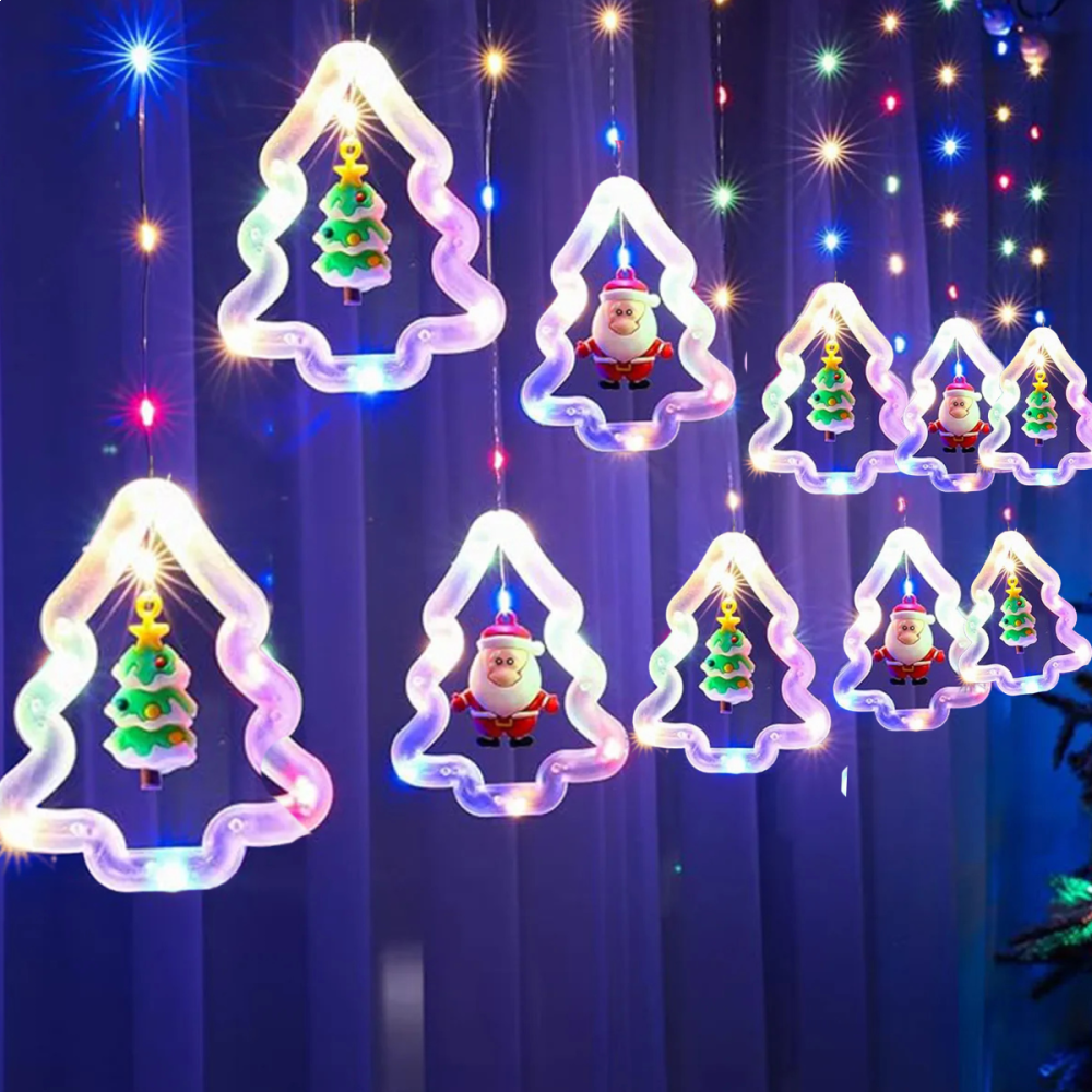 Pisca Pisca Cortina de Luz LED Natalina 3M Arvore de Natal e Papai Noel Colorido