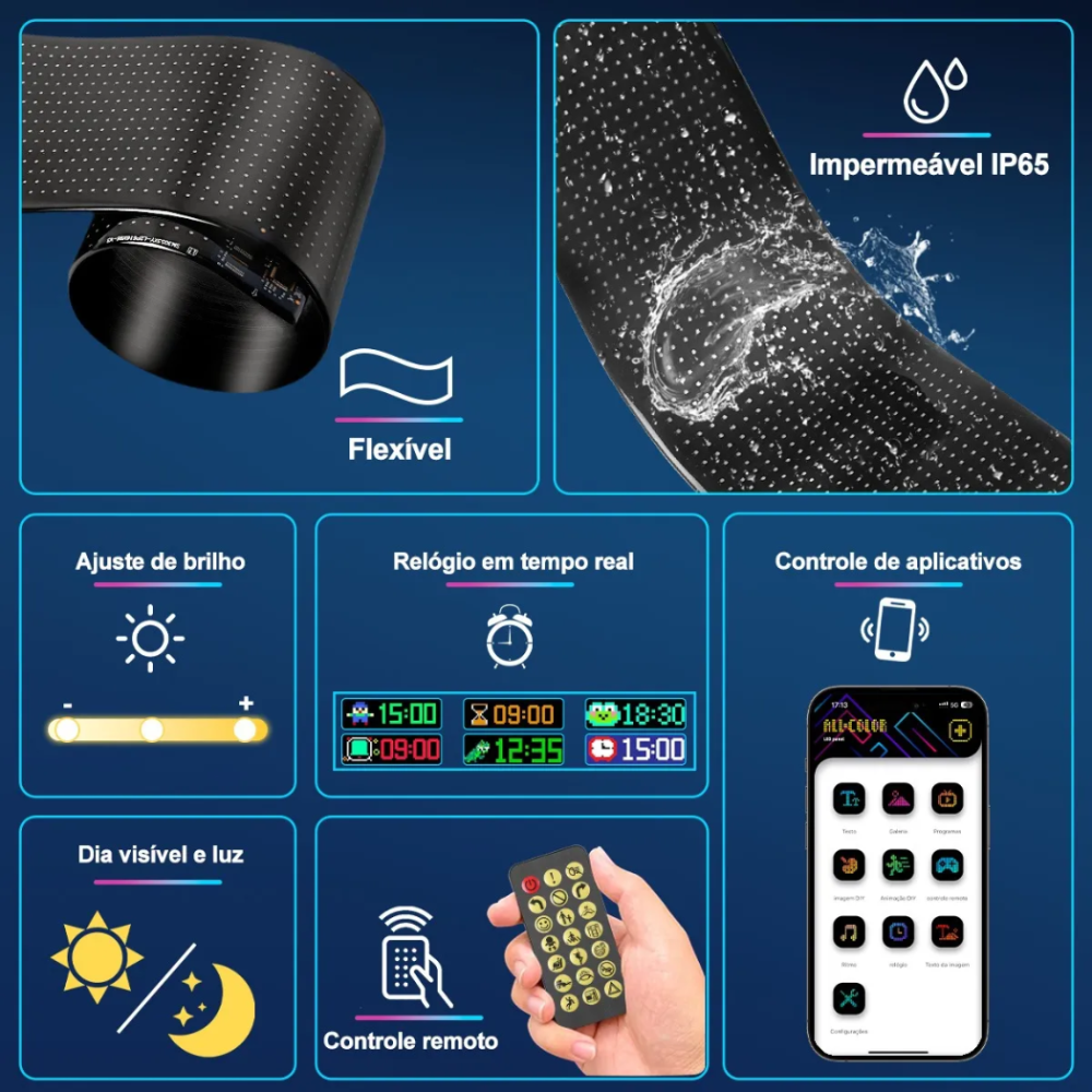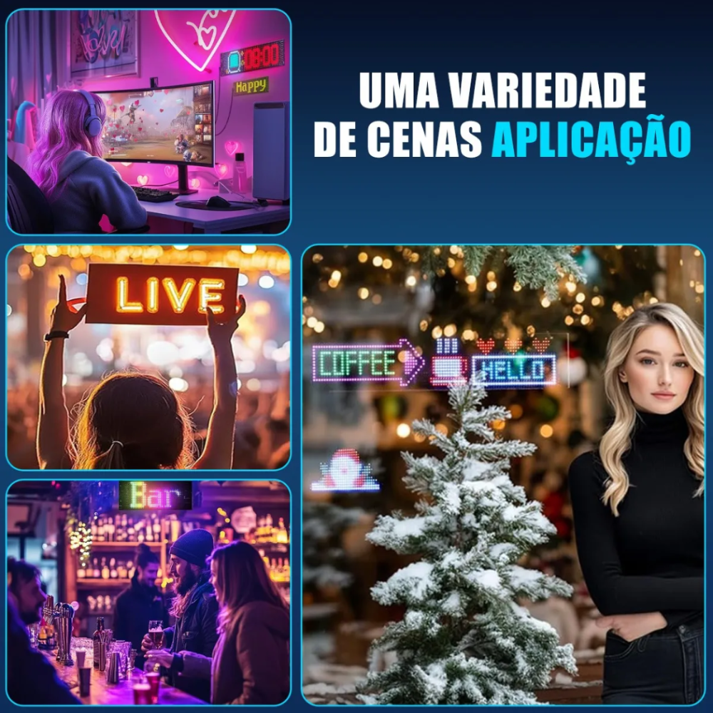 -Controle inteligente: Possui controle por aplicativo e também controle remoto, proporcionando praticidade e flexibilidade na hora de alterar mensagens.