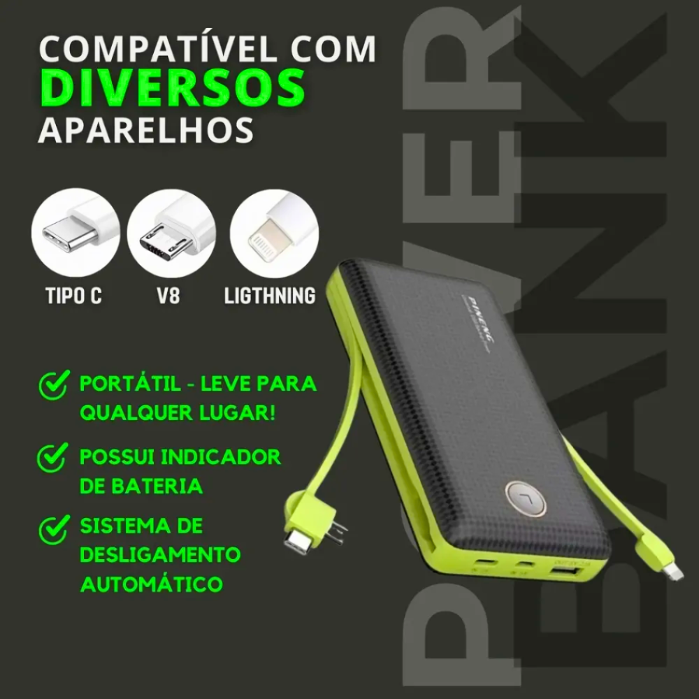 Carregador Portátil Power Bank 10000mAh com 04 Saídas USB / V8 / TIPO-C / Lightning