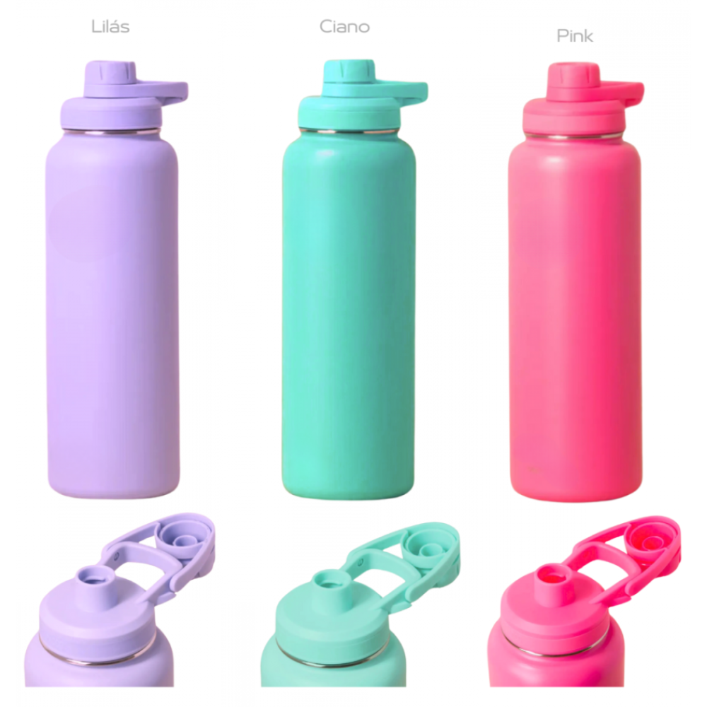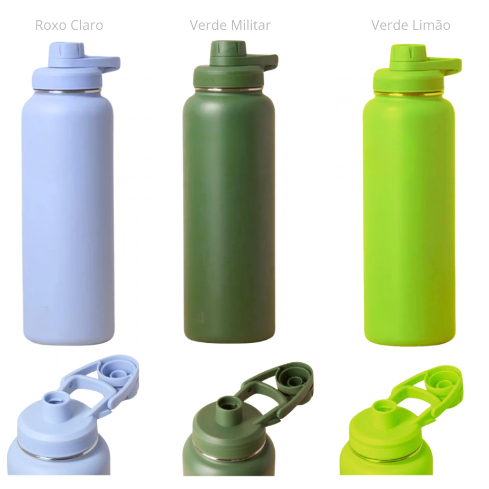 Garrafa Squeeze 1 Litro de Aço Inox Térmica com Alça Tampa Rosquear