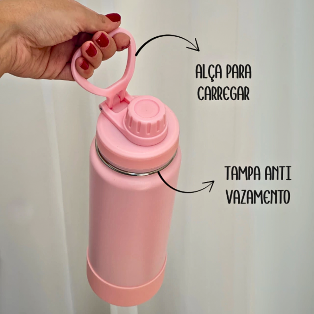 Tampa Anti-vazamento: Seja na bolsa, mochila ou carro, a Garrafa Térmica é projetada com uma tampa para evitar vazamentos. Viaje com tranquilidade, sabendo que suas bebidas permanecerão onde deveriam.