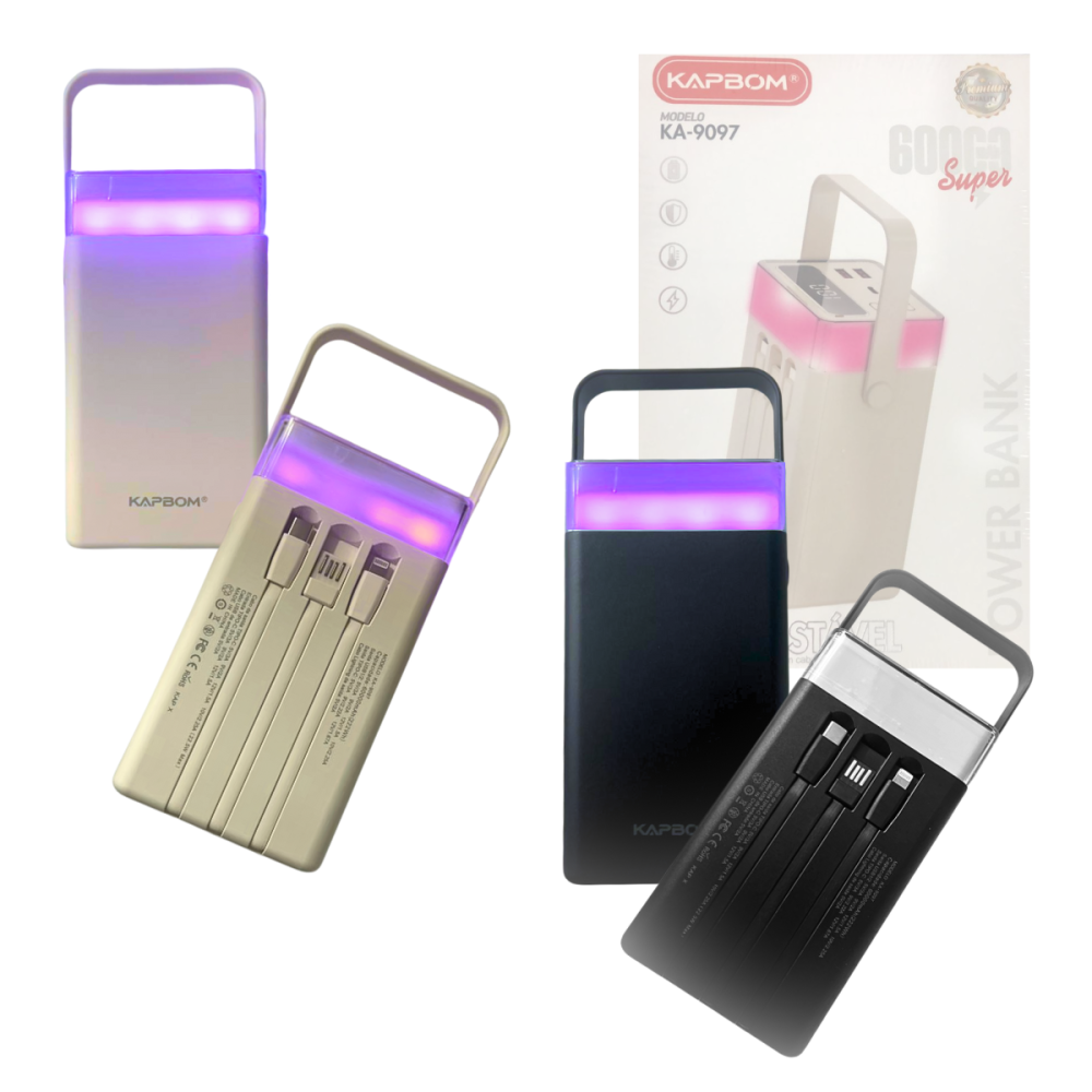 O Carregador Portátil Power Bank Kapbom modelo KA-9097 é uma solução de energia móvel de ultra alta capacidade, projetado para manter múltiplos dispositivos carregados por longos períodos, ideal para viagens extensas ou uso profissional intensivo.