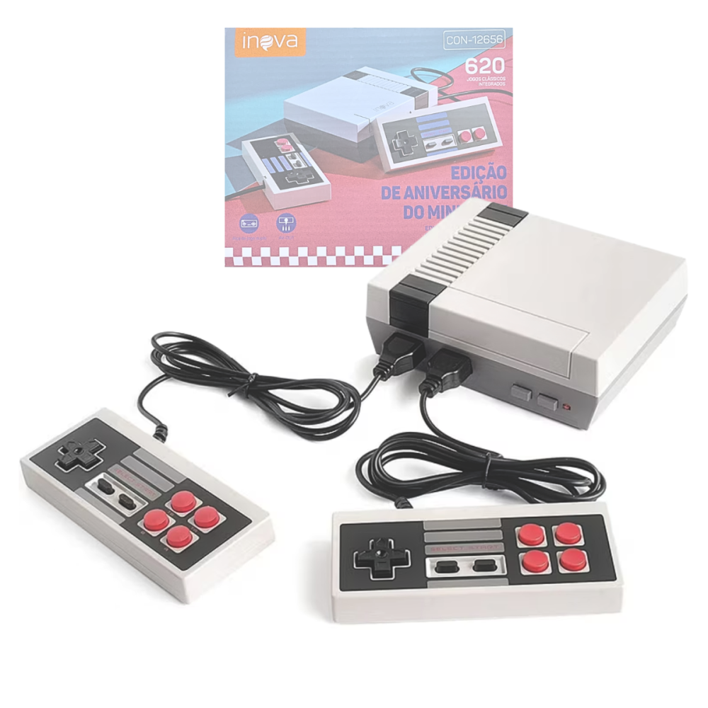Reviva os clássicos do mundo dos games com o Mini Vídeo Game Retrô INOVA CON-12656. Compacto e portátil, ele oferece horas de diversão com 620 jogos inclusos, ideal para crianças e adultos que querem jogar em qualquer lugar.