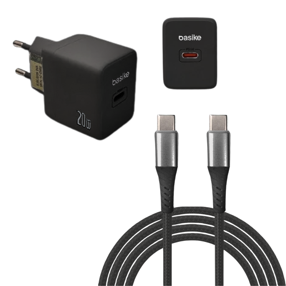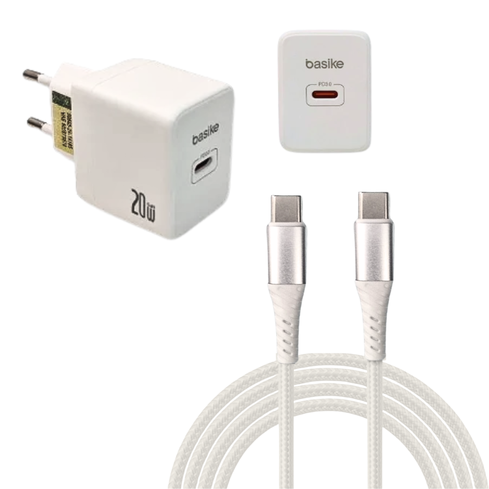 Carregador Completo 20W Porta TIPO-C e Cabo TIPO-C de 1 Metro Basike BA-CAR068CC