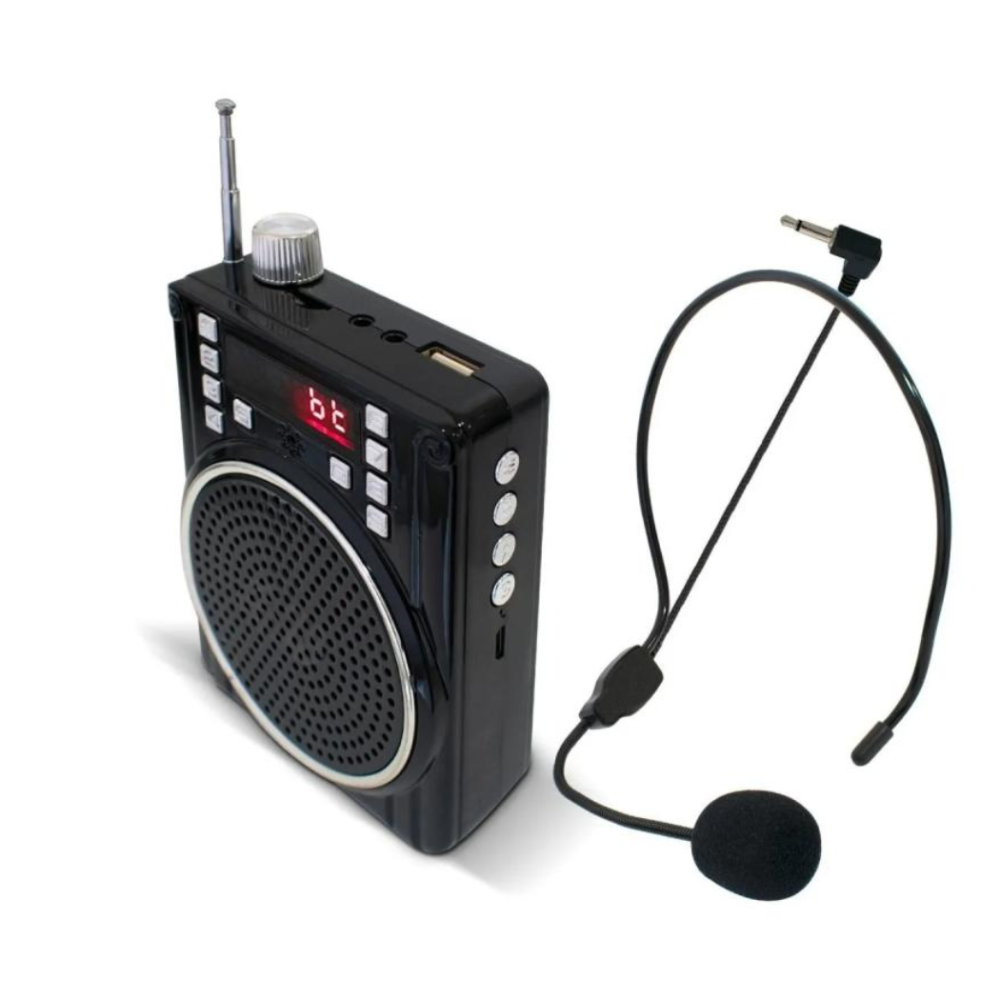 Além de amplificar a voz através do microfone headset (aquele que fica preso à cabeça), o KA-151 é um centro de mídia completo. Ele possui entrada para Pendrive e Cartão Micro SD, permitindo a reprodução de arquivos MP3. Isso é ideal para tocar áudios educativos ou músicas durante a aula. Ele também conta com Rádio FM com sintonia digital e uma entrada auxiliar para conectar dispositivos externos.