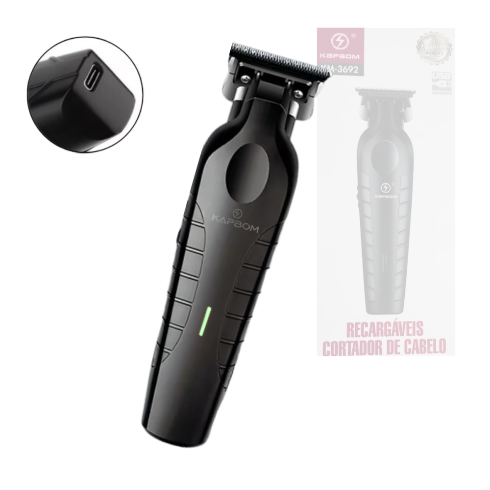 Máquina Aparador de Pêlo e Cabelo Profissional Recarregável Black Kapbom KM-3692