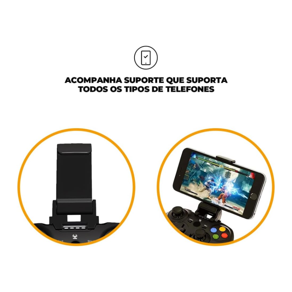 - Suporte retrátil: para acoplar o smartphone diretamente no controle