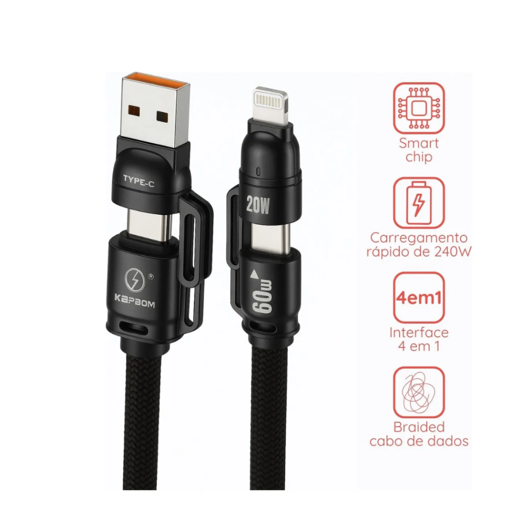 Com o Kapbom KA-3592-4IN1, você tem tudo o que precisa em um só cabo: eficiência, praticidade e qualidade.