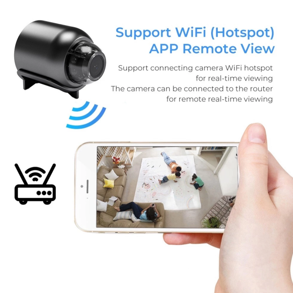 Câmera Mini HD Wi-Fi com Suporte e Sensor de Presença
