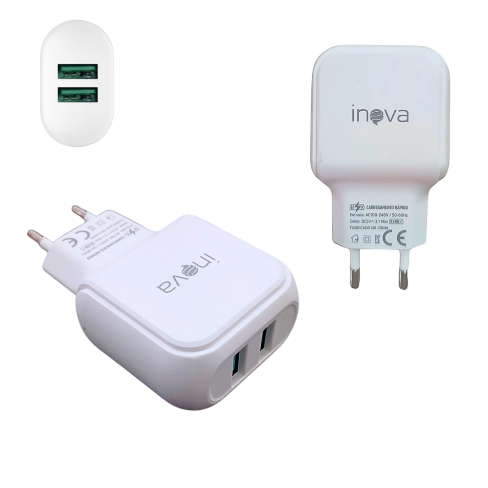 Carregador Completo Rápido 02 Portas USB 3.1A Cabo V8 de 1 Metro INOVA CAR-3294S