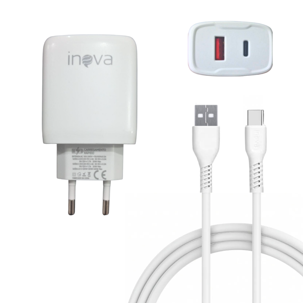 Carregador Completo 40W USB / TIPO-C Cabo TIPO-C de 1 Metro INOVA CAR-3186C