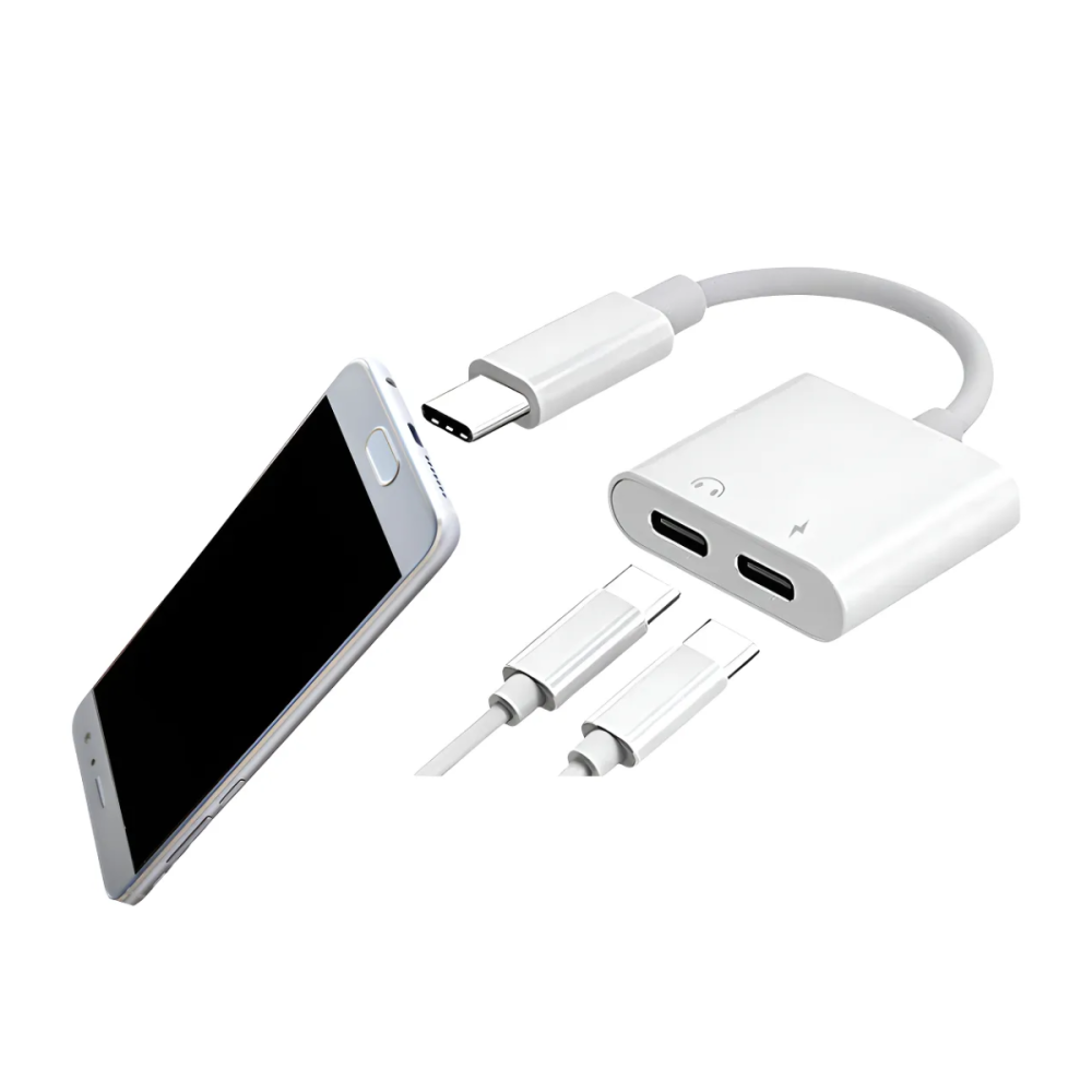 Adaptador OTG TIPO- C para 2 TIPO-C Áudio e Carregador 2.1A