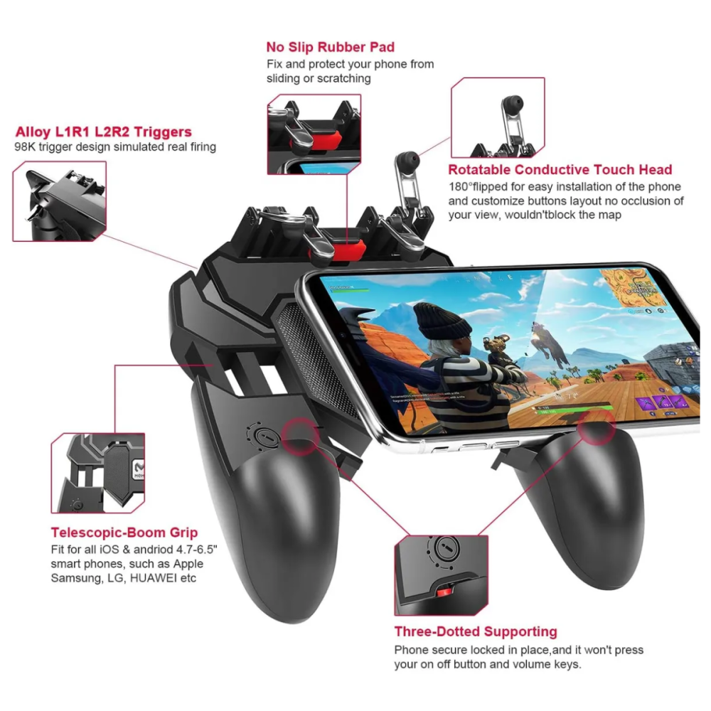 - Suporte para celular integrado, permitindo jogar sem segurar o aparelho