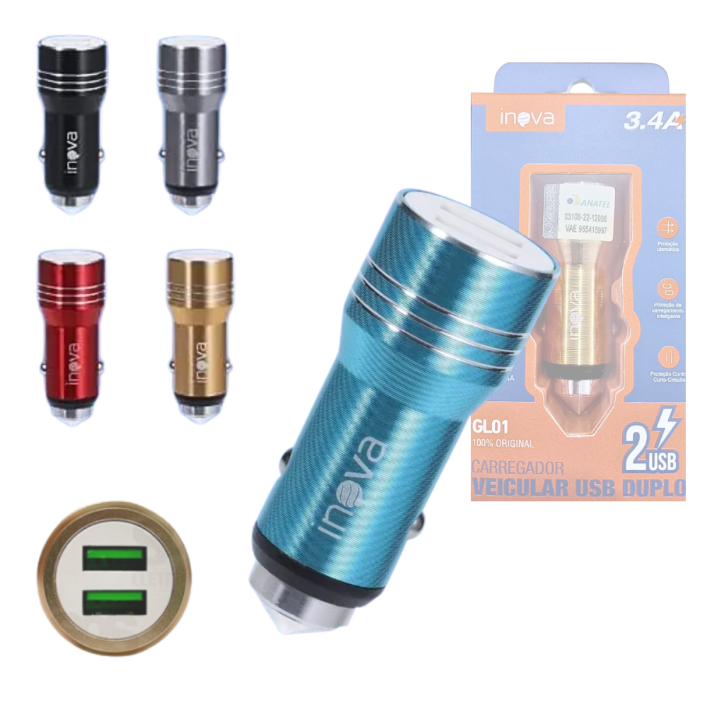 O Carregador Veicular INOVA GL01 é a solução perfeita para quem precisa carregar seus dispositivos com máxima velocidade e segurança enquanto dirige.