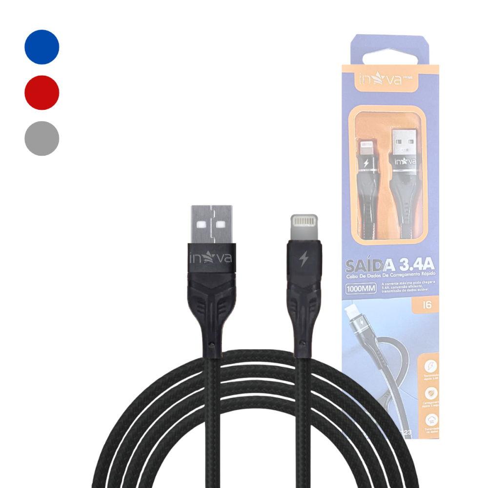 O Cabo INOVA KV-6123 une resistência e alta performance. Projetado com revestimento em nylon trançado, ele é muito mais durável que os cabos convencionais, evitando quebras e nós, além de oferecer um carregamento rápido e seguro para dispositivos Lightning.