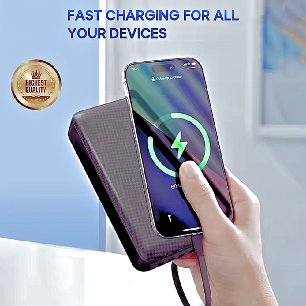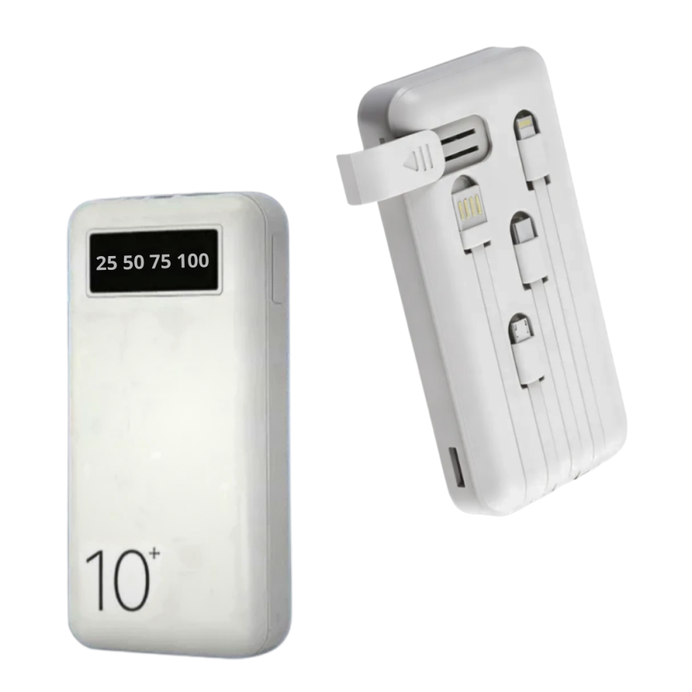 Com capacidade de 10.000mAh, ele possui quatro saídas diferentes, oferecendo uma experiência completa e versátil de carregamento.