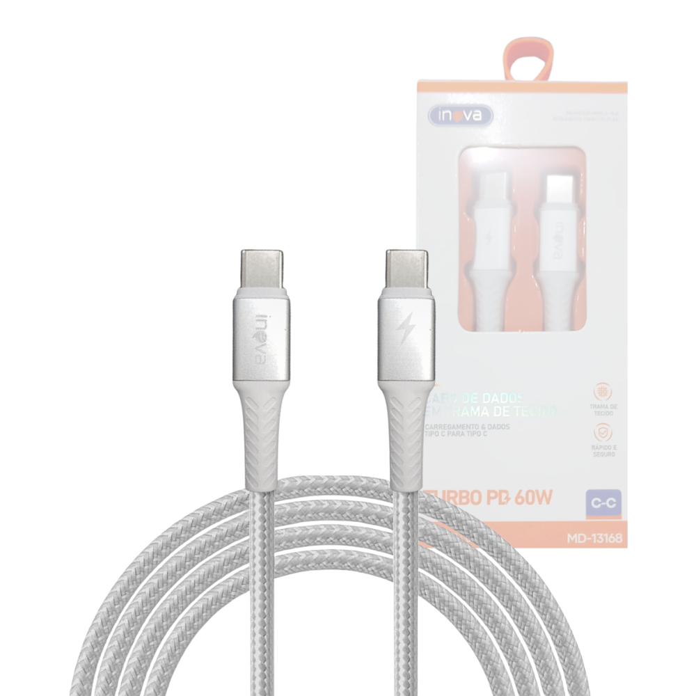 Cabo de Dados Tipo-C Para Tipo-C 60W Carregamento Turbo PD de 1 Metro INOVA MD-13168