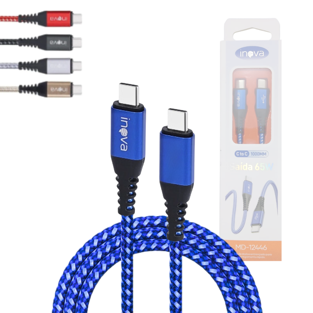 -- Cabo de Dados Conexão Tipo-C / Tipo-C 65W Cabo 1 Metro INOVA MD-12446