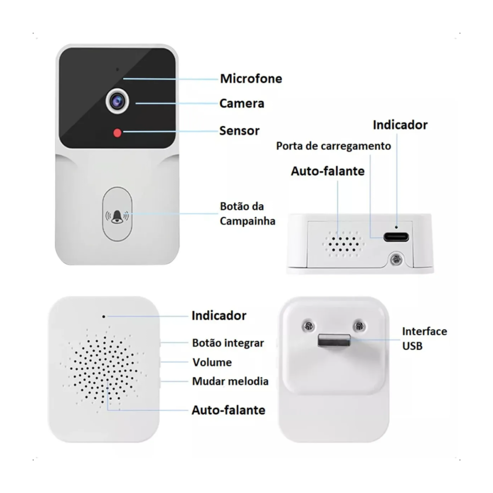 Campainha Inteligente Wi-fi Com Camera Vídeo Hd Visão Noturna Mini Doorbell