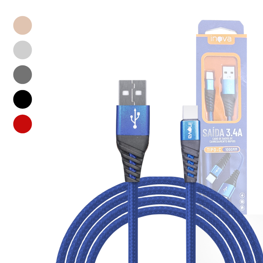 -- Cabo de dados 3.4A USB / TIPO-C Revestimento Nylon Trançado de 1 Metro INOVA MD-6009
