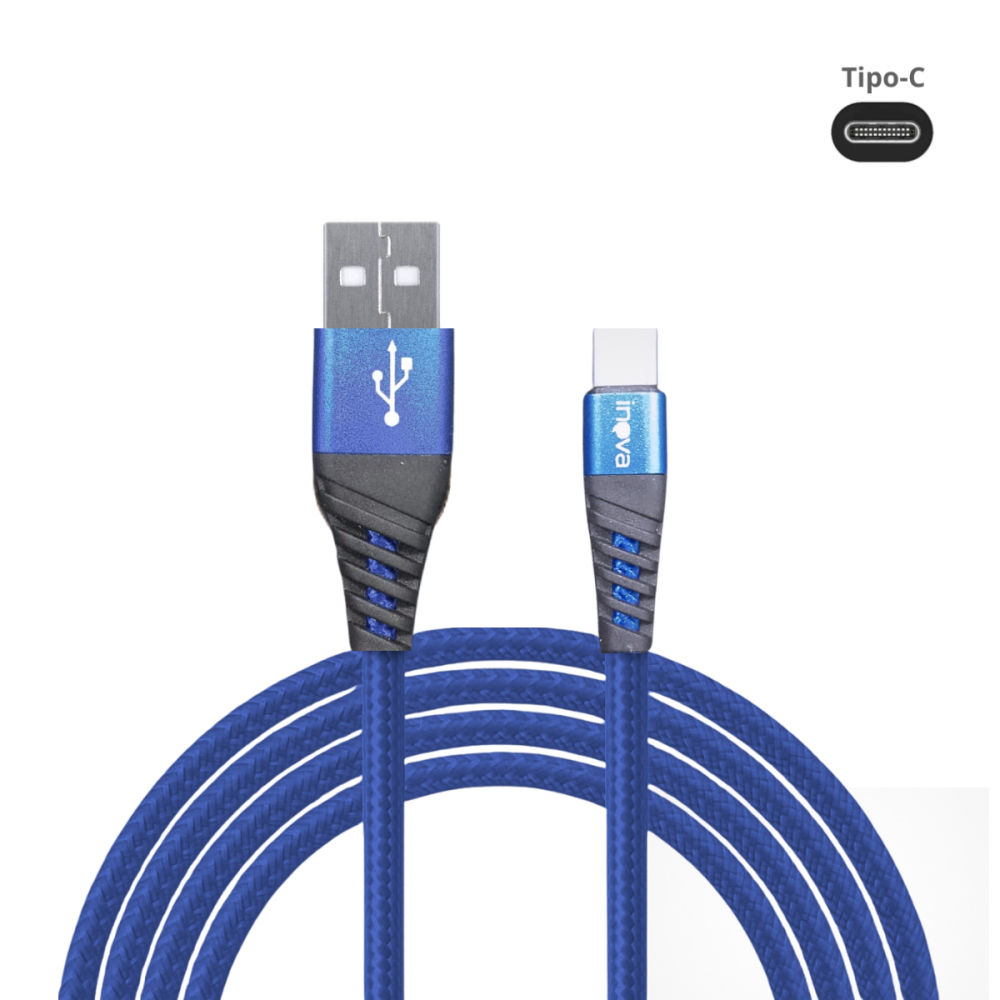 Cabo de dados 3.4A USB / TIPO-C Revestimento Nylon Trançado de 1 Metro INOVA MD-6009