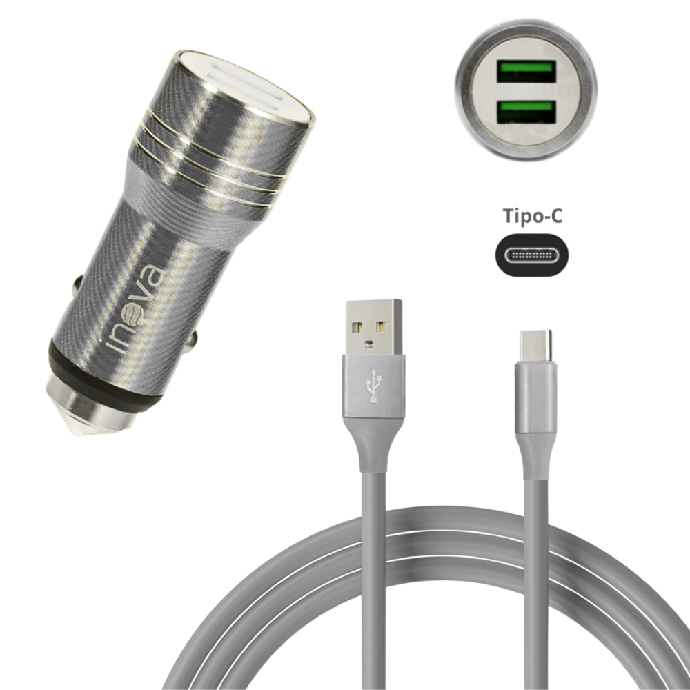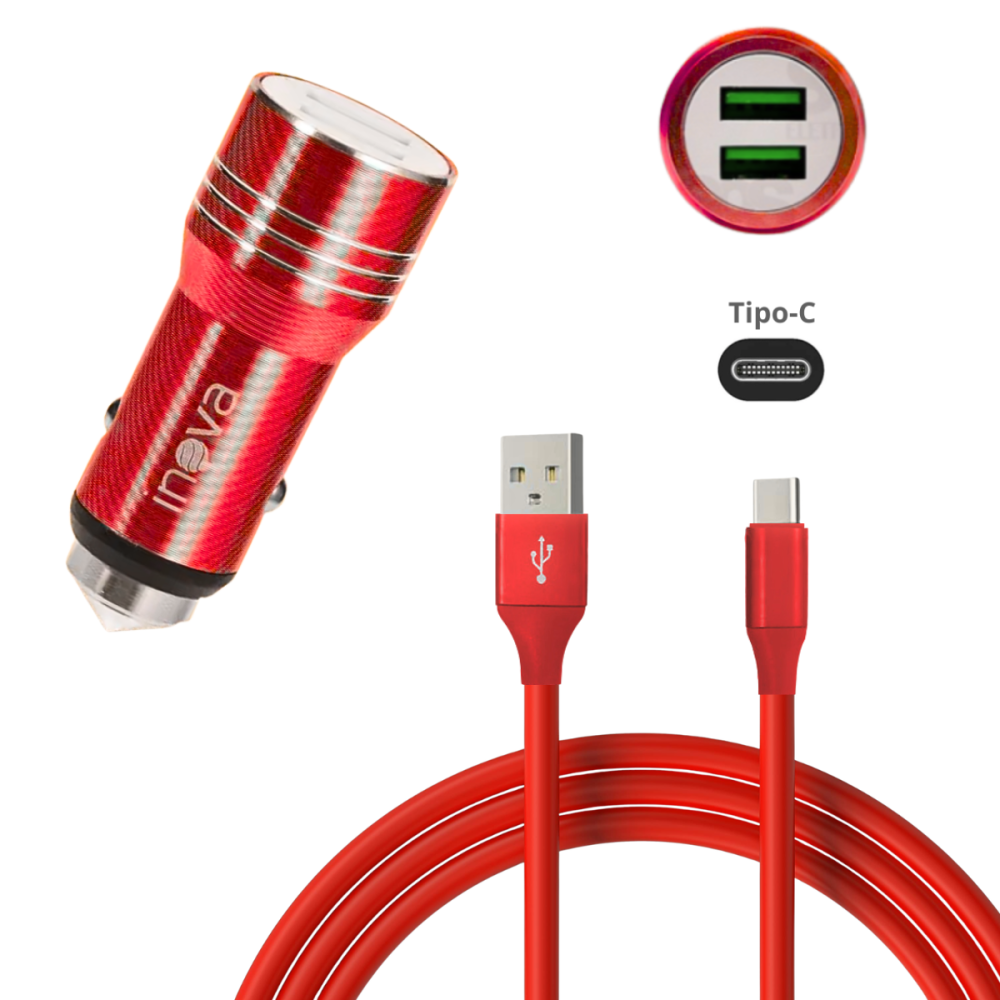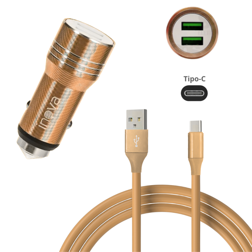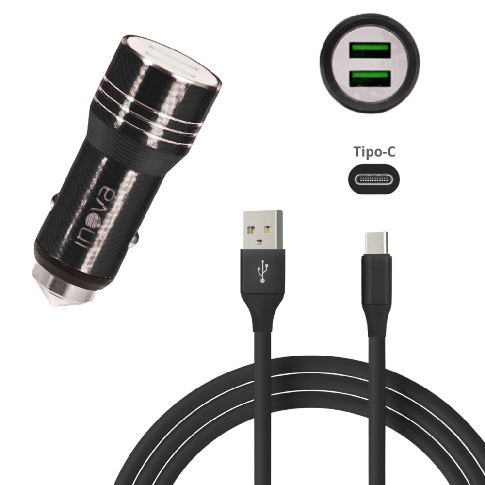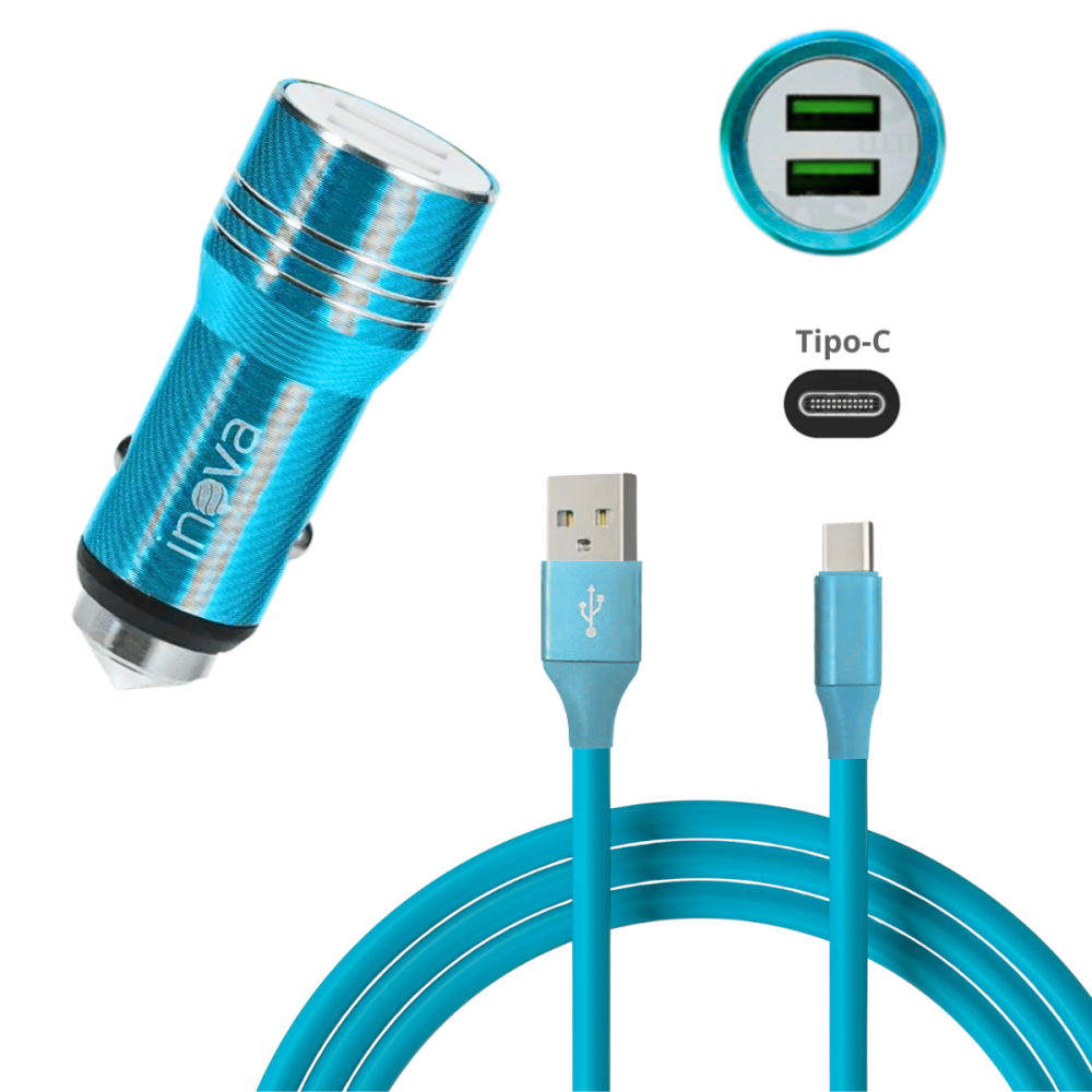 -- Carregador Veicular TURBO com 02 Portas USB Cabo TIPO-C de 1 Metro INOVA CAR-8357