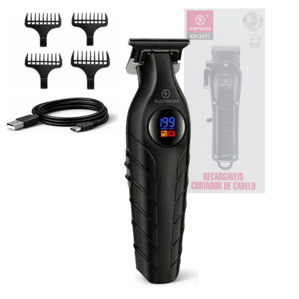 Máquina Aparador de Pêlo e Cabelo Profissional Recarregável com Tela Digital Kapbom KM-3693
