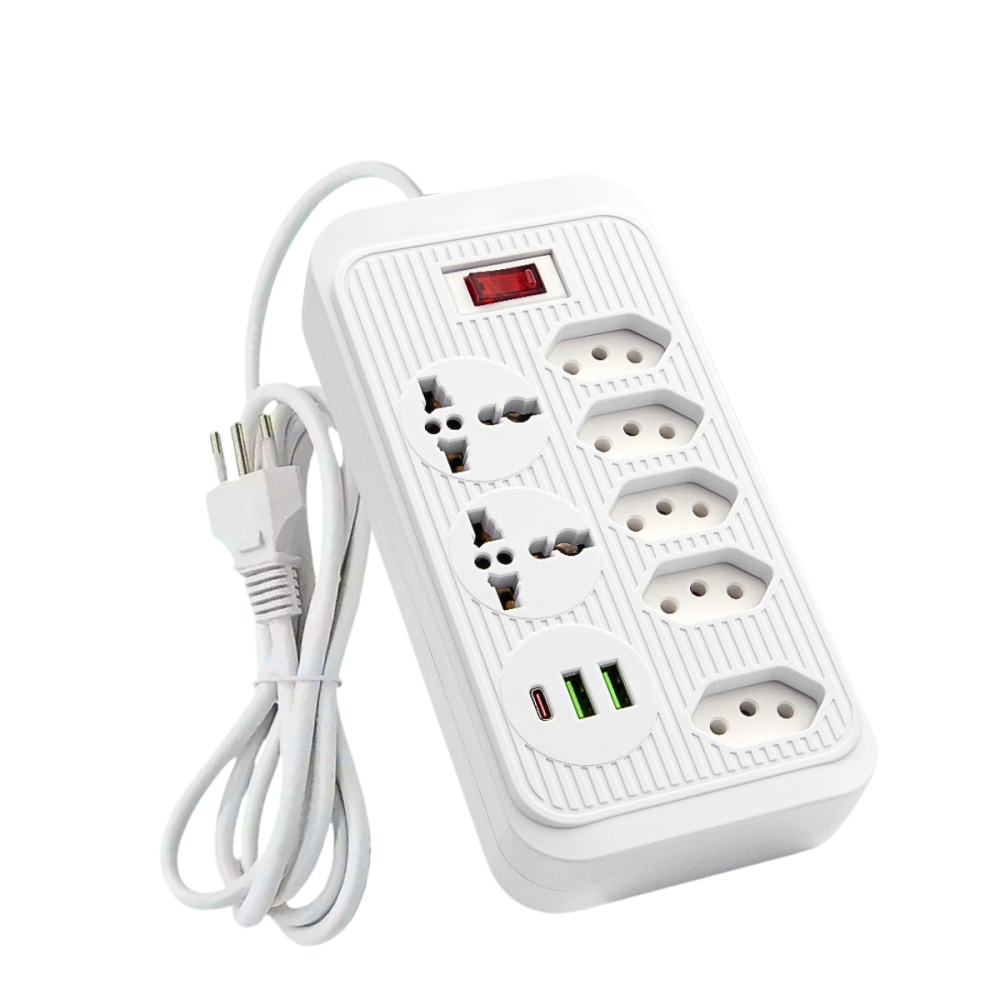 Filtro de Linha com 7 Tomadas 2 USB e TIPO -C Bivolt de 5 Metros