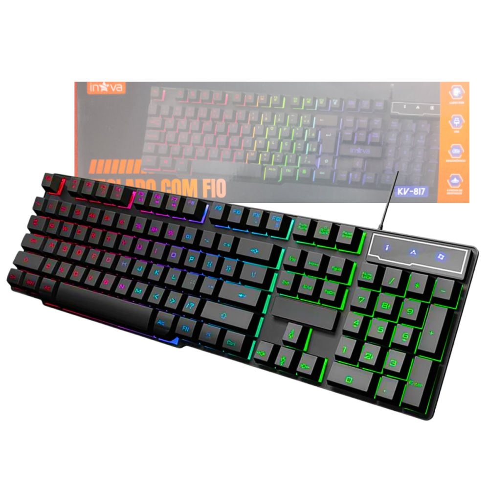 -- Teclado Gamer Semi-Mecânico LED RGB Plug & Play Computador Notebook ABNT2 Inova KV-817