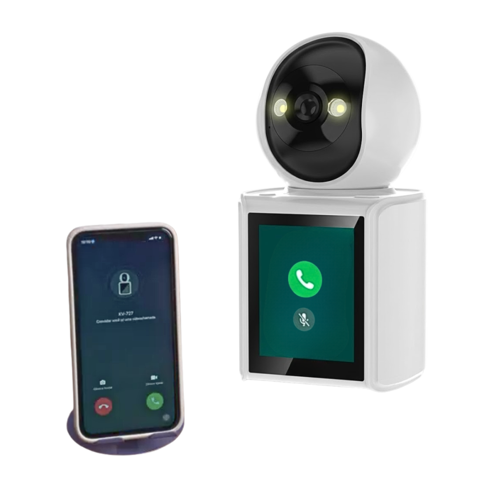 A Inova Prime KV-727 revoluciona o conceito de monitoramento residencial. Diferente das câmeras convencionais, ela possui uma tela LCD colorida que permite realizar chamadas de vídeo em tempo real.