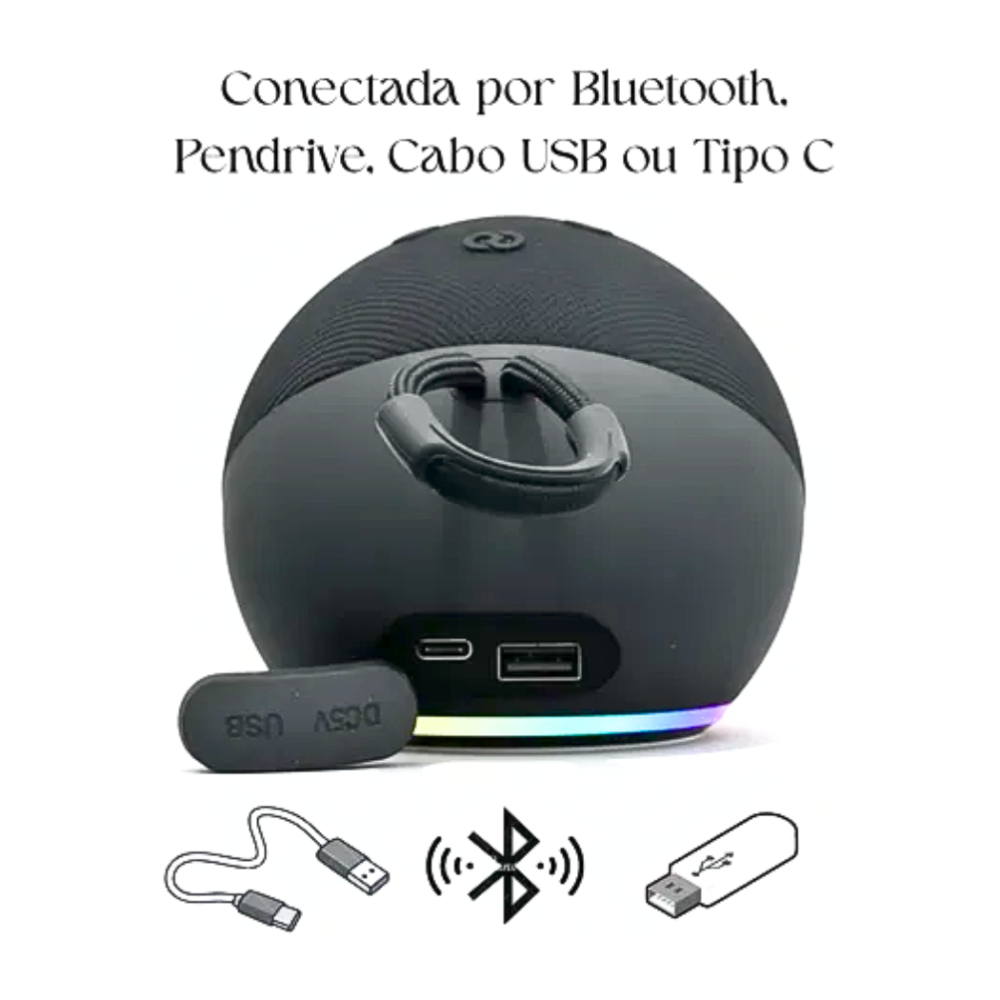 -Conectividade Total: Bluetooth 5.0 para conexão rápida sem fios, entrada USB, cartão Micro SD e Rádio FM integrado.