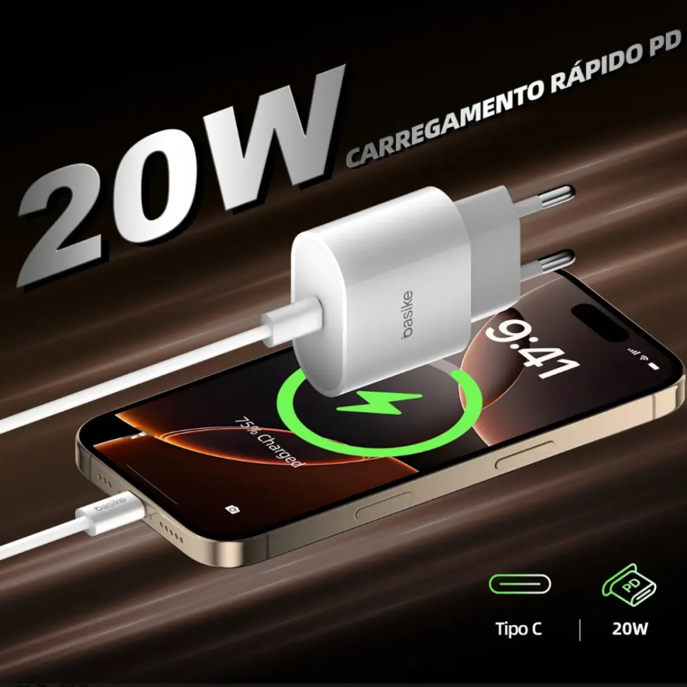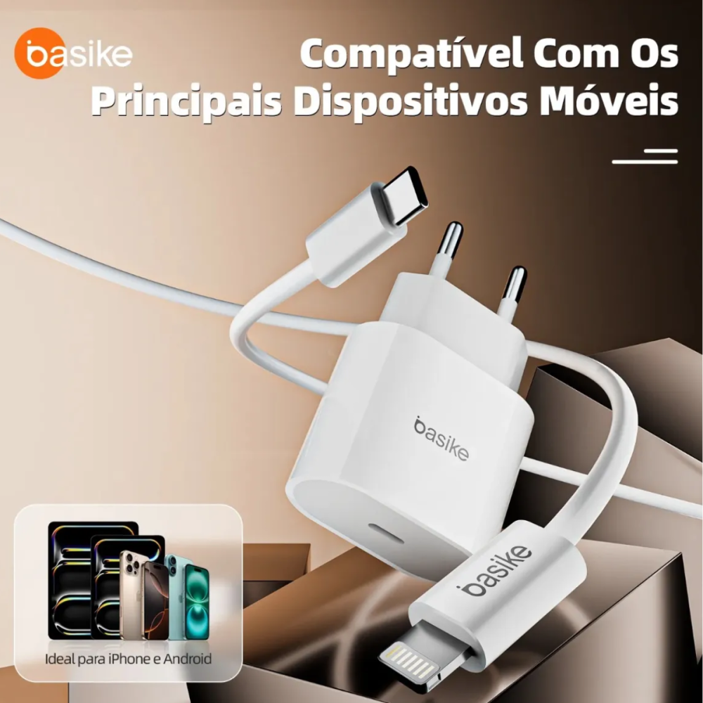 Carregador Completo Turbo PD 20W Conexão Lightning / TIPO-C Basike BA-CAR112